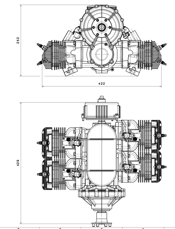 50 – 57 hp UAV engine, 660 cc four-opposed two-stroke, air-cooled.